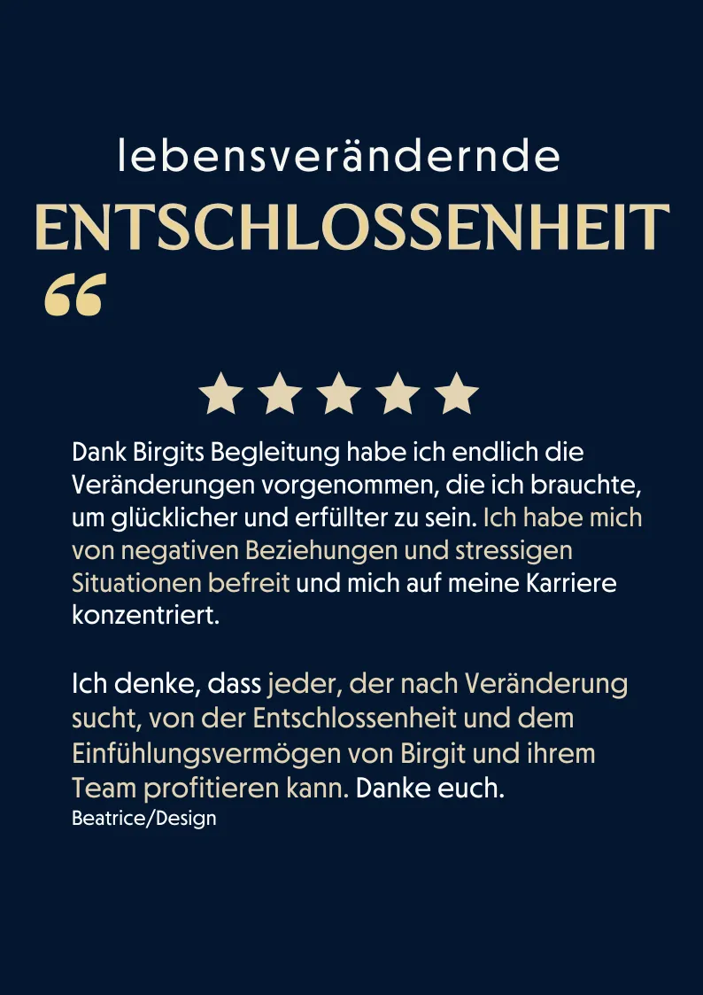 In deinem monatlichen BEvolution Life-Coaching erhältst du von Birgit praktische Tipps für Resilienz, Manifestation und Achtsamkeit – ergänzt durch umsetzbares Arbeitsmaterial, das dir hilft, deine Ziele Schritt für Schritt zu erreichen.